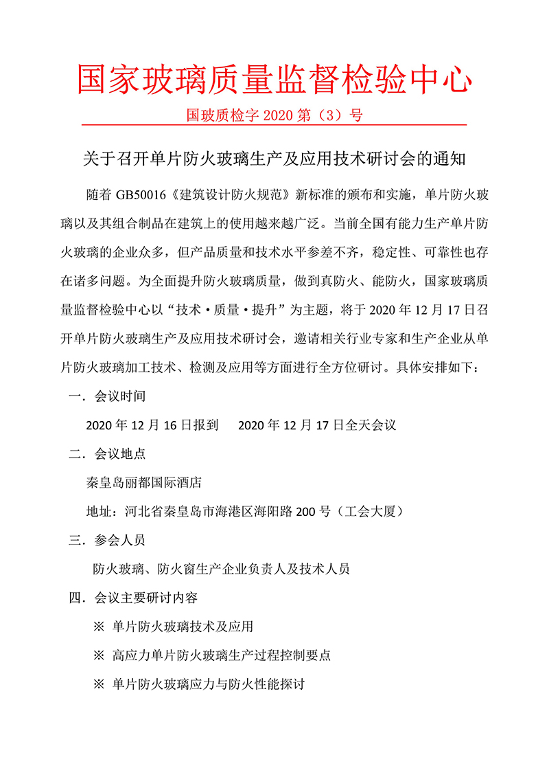 防火玻璃生產(chǎn)應(yīng)用技術(shù)研討會(huì)通知